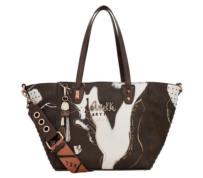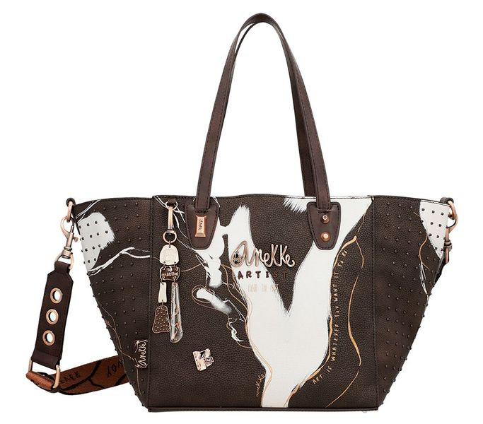 Barna színű anekke női kézitáska. Anyaga: szintetikus, Mérete: 25x23x18 cm