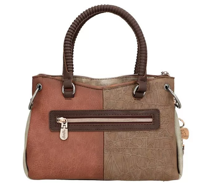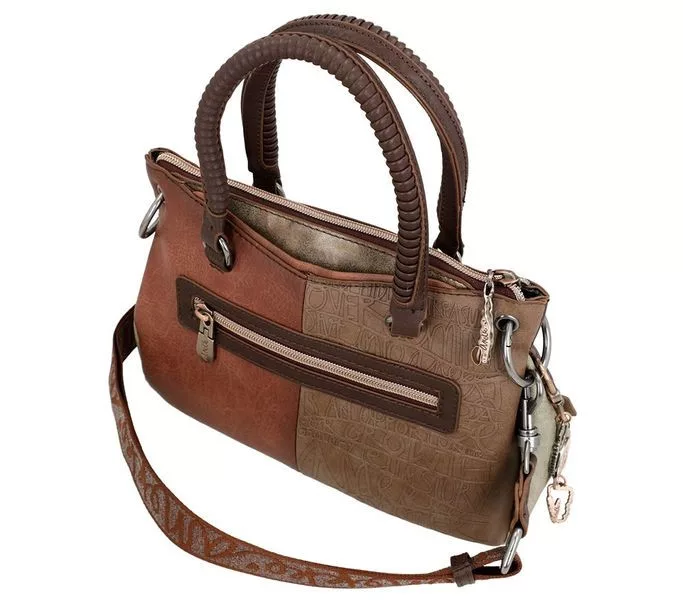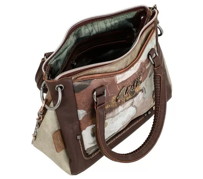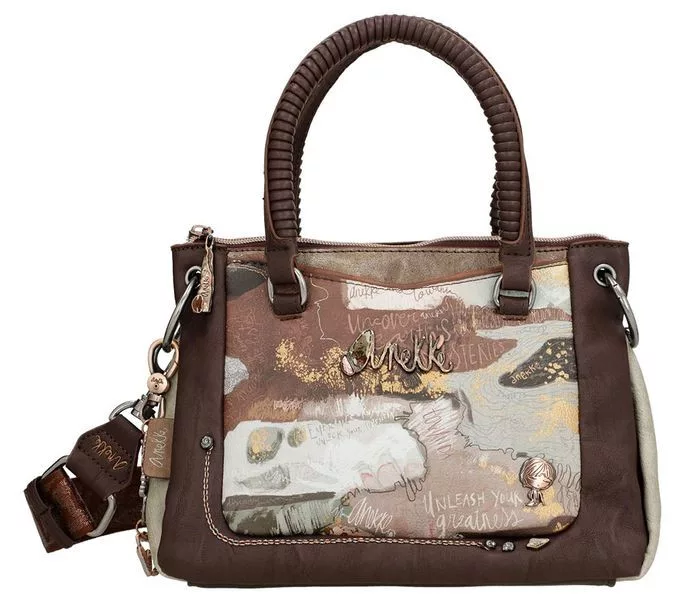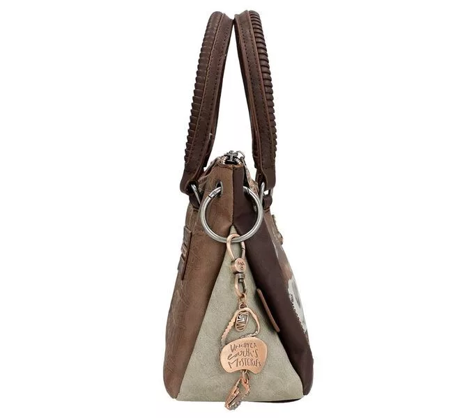 Barna színű anekke női kézitáska. Anyaga: szintetikus, Mérete: 26x19x9 cm