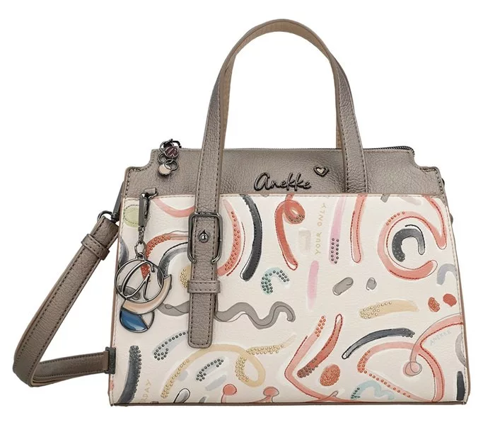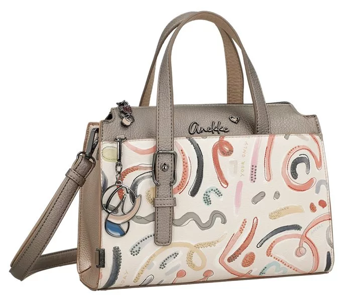 Bézs színű anekke női kézitáska. Anyaga: szintetikus, Mérete: 28x23x12 cm