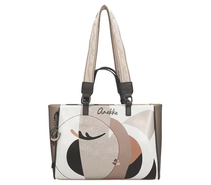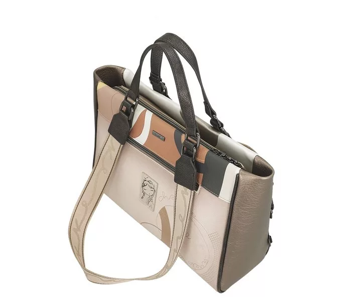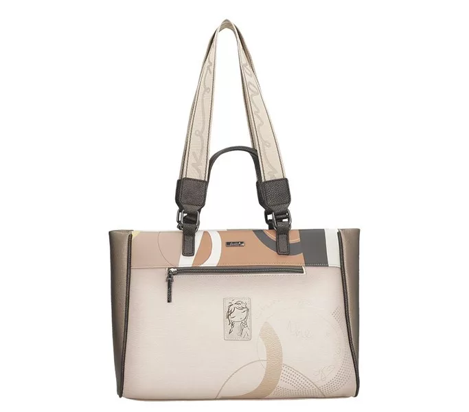 Bézs színű anekke női kézitáska. Anyaga: szintetikus, Mérete: 40x26x13 cm