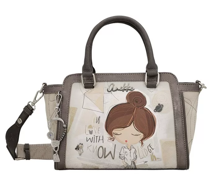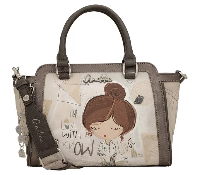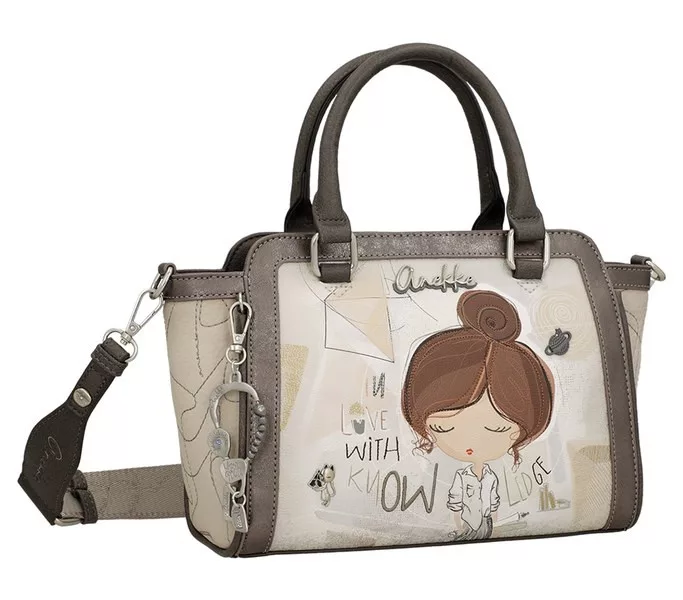 Bézs színű anekke női kézitáska. Anyaga: szintetikus, Mérete: 34-28x20x12 cm