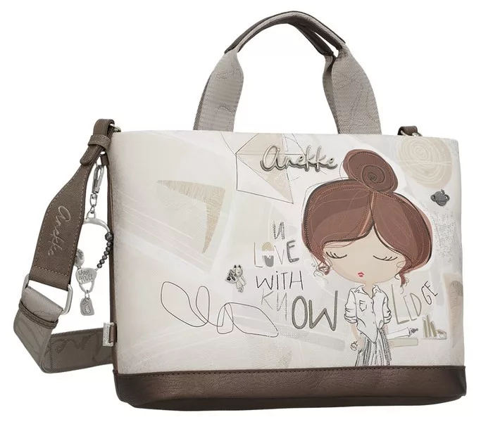 Bézs színű anekke női kézitáska. Anyaga: szintetikus, Mérete: 35x25x15 cm