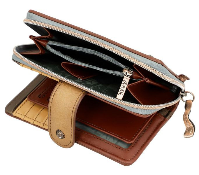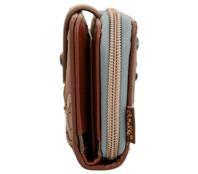 Barna színű anekke női pénztárca. Anyaga: szintetikus, Mérete: 15x10x3 cm