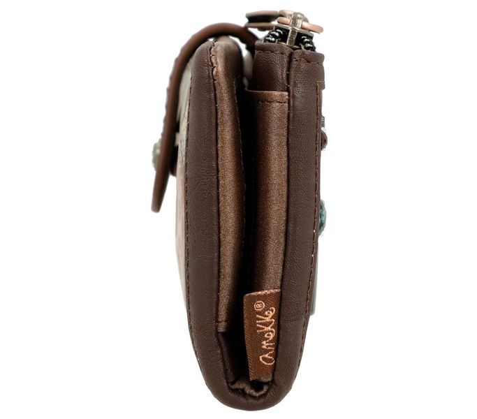 Barna színű anekke női pénztárca. Anyaga: szintetikus, Mérete: 15x10x3 cm
