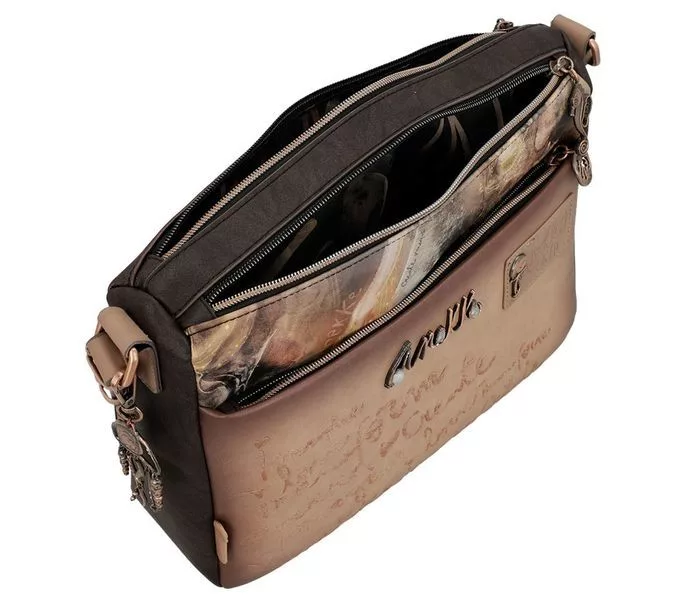 Barna színű anekke női testtáska. Anyaga: szintetikus, Mérete: 31x21x9 cm