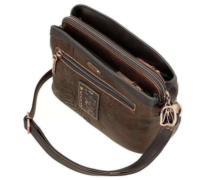 Barna színű anekke női testtáska. Anyaga: szintetikus, Mérete: 23x16x11 cm