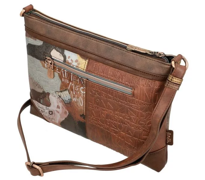 Barna színű anekke női testtáska. Anyaga: szintetikus, Mérete: 28x22x5 cm