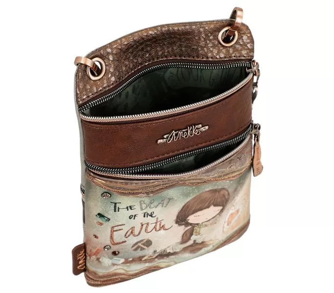Barna színű anekke női testtáska. Anyaga: szintetikus, Mérete: 15x23x2 cm