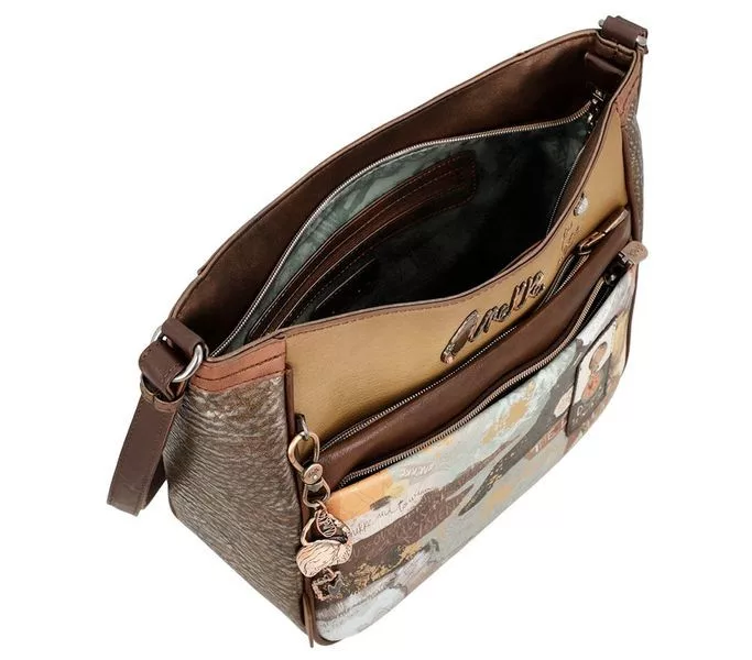 Barna színű anekke női testtáska. Anyaga: szintetikus, Mérete: 28x27x12 cm