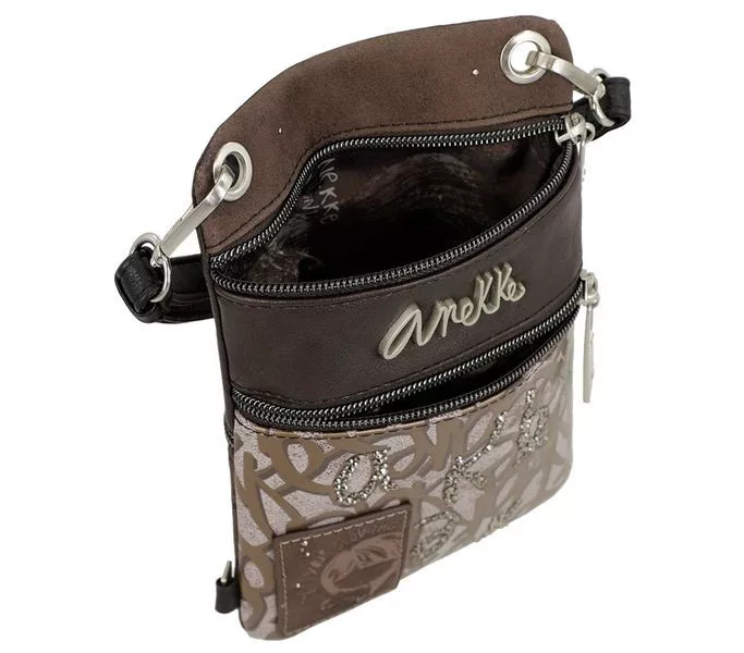 Barna színű anekke női testtáska. Anyaga: szintetikus, Mérete: 15x23x2 cm