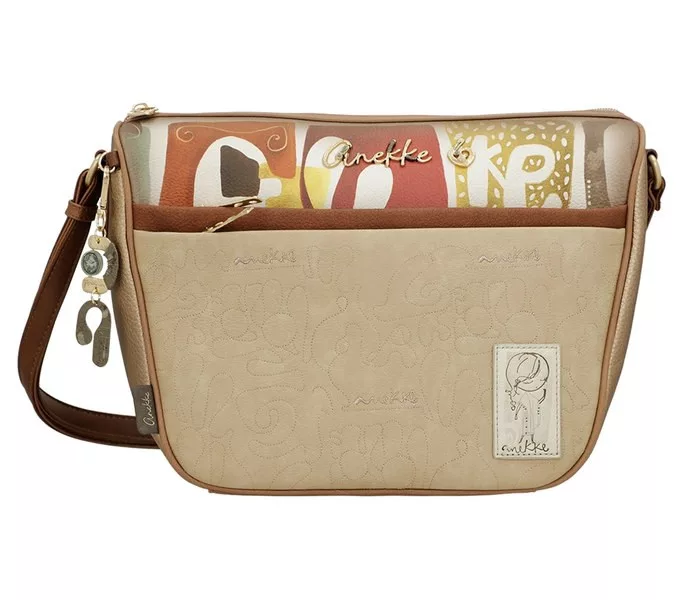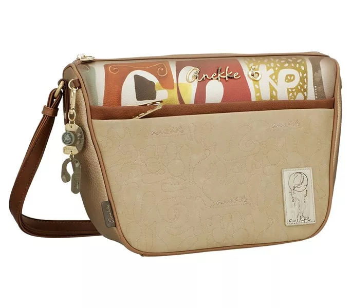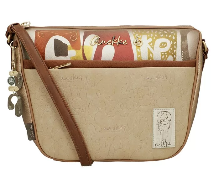 Bézs színű anekke női válltáska. Anyaga: szintetikus, Mérete: 32x24x13 cm
