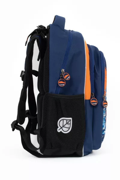 30x43x20 cm, 1,04 kg. Alapanyaga vízlepergető. Fényvisszaverő részletek. Mindkét oldalán hálós kulacstartó zseb. Légcsatornás hátlap . Eleje kikeményített. Különböző testmagasságokhoz állítható pántok. Három különálló cipzáros rekesz. Az első rekeszben rendszerező zsebek. Esővédő huzattal.