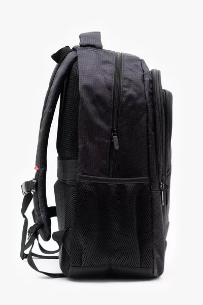 30x44x18 cm, 23L. Alapanyaga vízlepergető. Mindkét oldalán hálós kulacstartó zseb. Hátlapon biztonsági zseb. Három különálló cipzáros rekesz. Az első rekeszben rendszerező zsebek. Laptop tartó. Bőröndre rögzíthető.