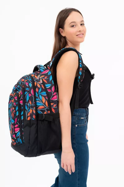 33x49x26 cm, 0,98 kg. Alapanyaga vízlepergető. Mindkét oldalán hálós kulacstartó zseb. Légcsatornás hátlap. Négy különálló cipzáros rekesz. A harmadik rekeszben rendszerező zsebek. Laptoptartó: 26 X 38 cm.
